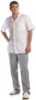 Костюм мужской состоит из куртки и брюк. Куртка прямого покроя, с классическим воротником и короткими рукавами. Застёжка на пуговицах. Есть три накладных кармана. Брюки удобные, прямого кроя на широком поясе-резинке, есть внутренний карман. Размер 68 Ткань тиси Состав 35% хлопок, 65% полиэфир