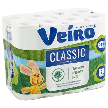 Бумага туалетная VEIRO Классик 2-х слойная на втулке (упаковка-24рулона)