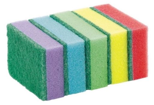 Губка состоит из двух слоёв, разных по толщине: поролонового и абразивного. Слои надёжно склеены между собой. Абразивный слой предназначен для очищения поверхности от трудновыводимых загрязнений, а поролоновый – мягкий и пористый, легко и нежно очищает посуду от жира и остатков пищи.