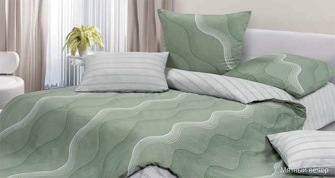 Комплект постельного белья Harmonica Мятный вечер 2спальный, ткань сатин