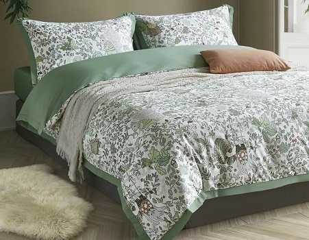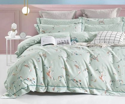 Комплект из печатного сатина. Гладкая и мягкая на ощупь ткань, хорошо держит форму, легко стирается. Гипоаллергенная, стойкая к износу. Обладает термоизоляционными свойствами: в жару полотно приятно охлаждает и не нагревается от тела, а в холод согревает.