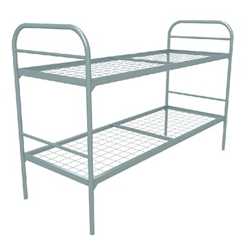 0Двухъярусная металлическая кровать. Высота от пола до ложа 40 см, между ярусами расстояние 90 см. Спальное место — жёсткая сварная сетка из проволоки сечением 4 мм, каждый ярус имеет одно усиление, ширина спального места — 80 см, длина — 190 см. Размер ячеек 10 на 10 см. Соединение спинок с лежаками происходит «клин в клин», за счёт этого кровать быстрее и проще устанавливается, а главное не расшатывается. Детали кровати имеют стойкое к механическим повреждениям защитно-декоративное покрытие.