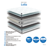 Матрас на независимом пружинном блоке «Лелия» ортопедический, очень удобный, в нём сочетаются все необходимые качества современного матраса. Жёсткость у матраса средняя. Система независимых пружин в форме бочонка, в которой каждый элемент упакован в отдельный кармашек. Пружины не соприкасаются друг с другом, матрас реагирует на нагрузку тела точечно, не создавая эффект гамака. Возникновение статического электричества внутри матраса сведено к минимуму, что способствует правильному кровообращению и здоровому сну. Настил из пенополиуретана толщиной 10 см, по периметру усилен специальным материалом, что не даёт краям сминаться и деформироваться. Чехол из жаккарда, простёганного с синтепоном. Матрас двусторонний, с одинаковой жёсткостью.