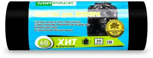 Мешки для мусора «ХИТ» 60л 8мкм (1рулон-30 шт)