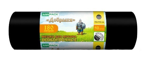 Мешки из серия «Добрыня» являются одними из самых прочных. Дно плоское без шва. Такая форма позволяет наполнить мешок без образования пустот, мусор в них полностью заполняет внутренний объем. Предназначены для тяжёлого и крупногабаритного мусора, применяются для сбора грубых отходов. Выдерживают высокие нагрузки, устойчивы к проколу ветками деревьев и острыми углами бытового и хозяйственного мусора.