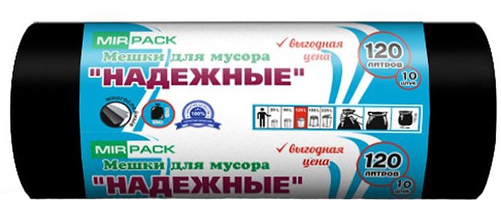 Мешки для мусора «Надёжные» 120л 30мкм ПВД, чёрные (1рулон-10шт)