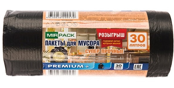 Мешки для мусора «PREMIUM+» 30л, 20мкм, ПСД (1рулон-30шт)