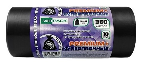 Мешки для мусора «PREMIUM+» 360л, 65мкм, ПВД (1рулон-5шт)