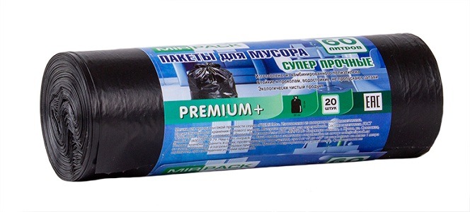 Мешки для мусора «PREMIUM+» 60л, 20мкм, ПСД (1рулон-20шт)
