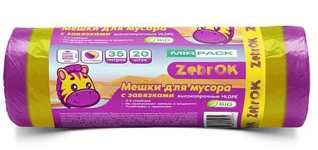 Мешки для мусора ZebrOK 35л, 35 мкм жёлто-фиолетовые, С ЗАВЯЗКАМИ (1рулон-20шт)
