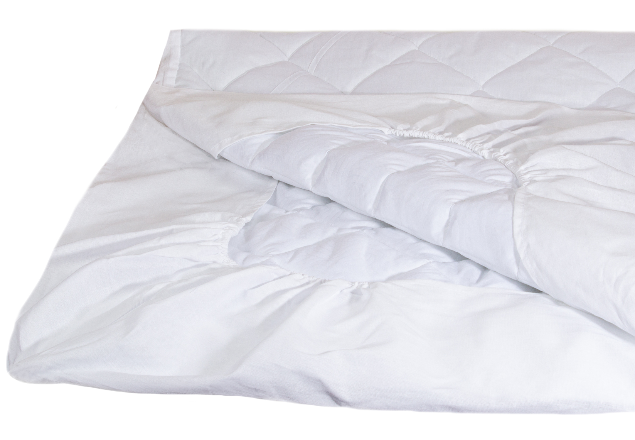 Наматрасник с наполнителем бамбуковое волокно. Верх — импортная бязь. Фиксируется бортом, который плотно обхватывает матрас по контуру.