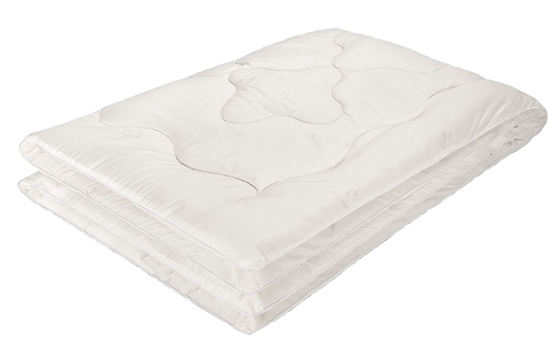 Стёганое одеяло с наполнителем из овечьей шерсти с добавлением полиэфирного волокна, плотностью 300 г/кв.м. Шерсть – уникальный природный материал, который хорошо согревает, пропускает воздух, быстро впитывает влагу, испаряемую телом, поэтому уже на протяжении долгого времени используется для наполнения спальных принадлежностей. Считается, что руно овцы создает сухое тепло, успокаивает нервную систему, снижает мышечные и суставные боли. Благодаря полиэфирным волокнам одеяло становится более «дышащим», приобретает более высокие эксплуатационные характеристики.