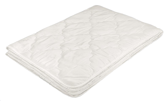 Лёгкое стёганое одеяло с наполнителем из овечьей шерсти с добавлением полиэфирного волокна, плотностью 150 г/кв.м. Шерсть – уникальный природный материал, который хорошо согревает, пропускает воздух, быстро впитывает влагу, испаряемую телом, поэтому уже на протяжении долгого времени используется для наполнения спальных принадлежностей. Считается, что руно овцы создает сухое тепло, успокаивает нервную систему, снижает мышечные и суставные боли. Благодаря полиэфирным волокнам одеяло становится более «дышащим», приобретает более высокие эксплуатационные характеристики.