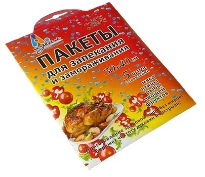 Пакеты предназначены для запекания пищевых продуктов из мяса, рыбы, овощей в собственном соку с максимальным сохранением натурального аромата и вкуса без использования жира. Можно использовать для заморозки продуктов и размораживания в СВЧ, а так же для разогрева готовых продуктов. Размеры 30х40 Количество 5 штук Производство Россия
