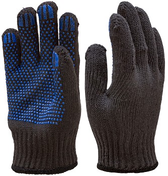 Перчатки трикотажные кругловязаные, с ПВХ-нанесением, предназначены для проведения ремонтно-строительных, садовых, уборочных, погрузо-разгрузочных и других видов работ. ПВХ напыление располагается со стороны ладони и на пальцах, предотвращает скольжение и обеспечивает прочный захват деталей или инструментов. Изготавливают их из хлопчатобумажной ткани, обладающей отличной воздухопроницаемостью и не раздражающей кожу. Количество нитей влияет на плотность, прочность и долговечность. Класс вязки – показатель, измеряющий количество нитей на квадратный дюйм изделия. Влияет на плотность изделия и защиту от загрязнения. Отличаются прочностью и долговечностью.