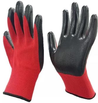 Нейлоновые перчатки СУПЕР ЛЮКС с нитриловым покрытием обладают высокой тактильной чувствительностью за счёт вязки высокого класса — 15 петель на дюйм. Используются для выполнения точных и тонких работ. Высокоизносостойкое нитриловое покрытие отлично защищает от воздействия бензина, масел, кислот и щелочей. Изделия не пропускают влагу и обладают маслоотталкивающими свойствами. Благодаря анатомической форме перчатки плотно облегают руки. Предназначены для долгого ношения, благодаря своей гипоаллергенности. Имеют яркую красно-чёрную окраску. Также садовые перчатки отлично подходят для работы с химикатами, удобрениями, краской, побелкой.