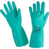 Перчатки Изумруд из нитрила с хлопковым внутренним напылением. Обеспечивают защиту рук от растворов кислот (до 80%), щелочей (до 40%) и механический воздействий. Манжета удлинённая. Поверхность ладони рельефная. Перчатки применяются при высокой концентрации агрессивных сред.