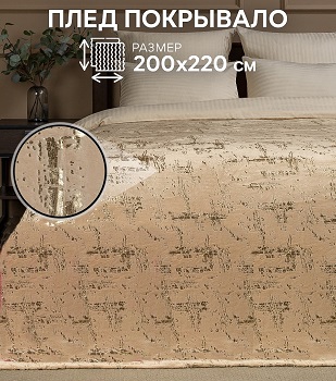 Плед Texrepublic «Мазки» Евро 200*220 бежевый с золотом (арт.6546)