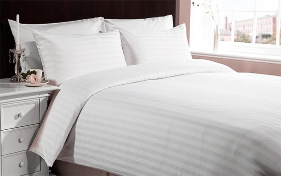 Белый пододеяльник из страйп-сатина, полосы шириной 3 см. Страйп-сатин (stripe — полоска) очень прочная жаккардовая ткань из 100% хлопка. Полосы появляются благодаря разному направлению нитей в ткани. Пододеяльник произведён по технологии Air-jet. Технология позволяет получить материал с минимальными показателями усадки, который хорошо держит форму, обладает отличными прочностными характеристиками, эксплутационный ресурс ткани позволяет выдержать несколько сотен стирок без изменения внешнего вида. Гипоаллергенный, экологичный.
