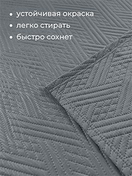Покрывало из микрофибры, наполнитель синтепон. Ткань является противоаллегренной, безопасна для здоровья. Синтепон простёган стёжкой Ультрастеп с микрофиброй. Покрывало обладет воздухопроницаемостью, держит форму и не «сбивается» даже спустя продолжительный период эксплуатации. Приятное на ощупь, лёгкое, что немаловажно для комфортного отдыха.