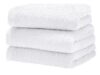 Белое махровое полотенце без бордюра, одинарная петля. Обладает высокой гигроскопичностью, мягкое на ощупь. Имеет высокую плотность. Хорошо переносит стирку и сушку. Используется в домашних условиях, гостиницах, хостелах, детских садах и в больницах.