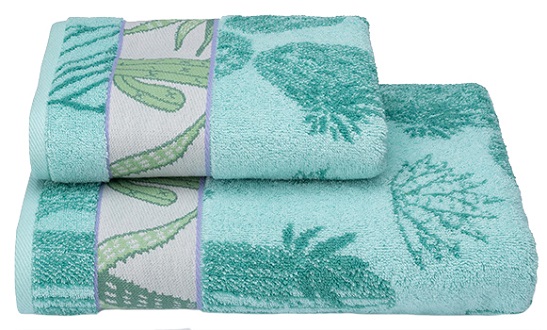 Красивое полотенце изготовлено из натурального хлопка. Обладает пушистым и мягким ворсом и хорошо впитывает влагу, не линяет и не выгорает, после многократных стирок не теряет форму. Само полотно свежего зелёного и ментолового цветов и декорировано бордюром в розовом, лавандовом и зелёных оттенках. Вы по достоинству оцените его оригинальный дизайн, функциональность и качество.