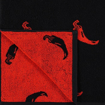 Махровое полотенце выполнено из натуральной хлопковой пряжи высокого качества. Изделие обладает особой мягкостью и пушистыми махровыми петлями. Полотенце в чёрном исполнении декорировано растительным принтом красного и зелёного цветов.Полотенце хорошо впитывает влагу, не линяет и не выгорает, после многократных стирок не теряет форму.