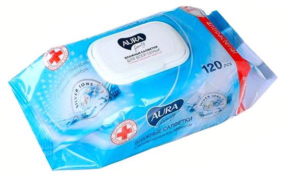Салфетки влажные AURA Family Антибактериальные 120шт, с крышкой
