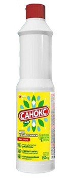 Санокс — Гель удалит без следа ржавчину, а также разнообразные загрязнения в ванной, туалетной комнатах и на кухне. Содержит ускоритель чистки, щавелевую и сульфаминовую кислоту. Придает чистоту и блеск сантехнике, а также устраняет налёт, источники неприятного запаха и не оставляет после себя никаких следов — только свежесть (запах специфический) и дезинфекция. Убивает бактерии, возбудителей любых кишечных инфекций, вирусы.