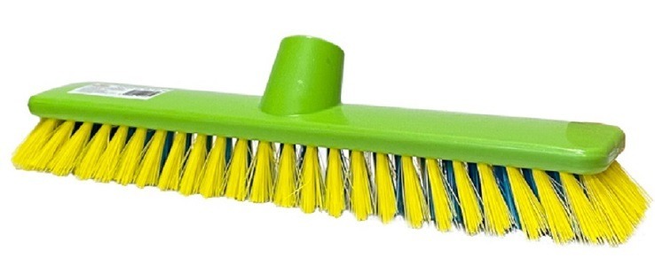 Щётка имеет прочную колодку, жёсткую нераспушенную щетину. Оснащена резьбовым креплением для ручки. Крепление к черенку под углом, что обеспечивает минимальные усилия при уборке .