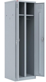 Шкаф металлический разборный двухсекционный, предназначен для хранения сменной одежды. Две независимые секции с индивидуальным доступом.