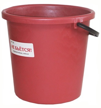 Прочное бытовое ведро, не бьётся, морозостойкое с уплотнёнными стенками. Имеет рифлёную ручку, предотвращающую выскальзывание. Внутри нанесена мерная шкала.